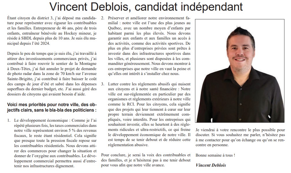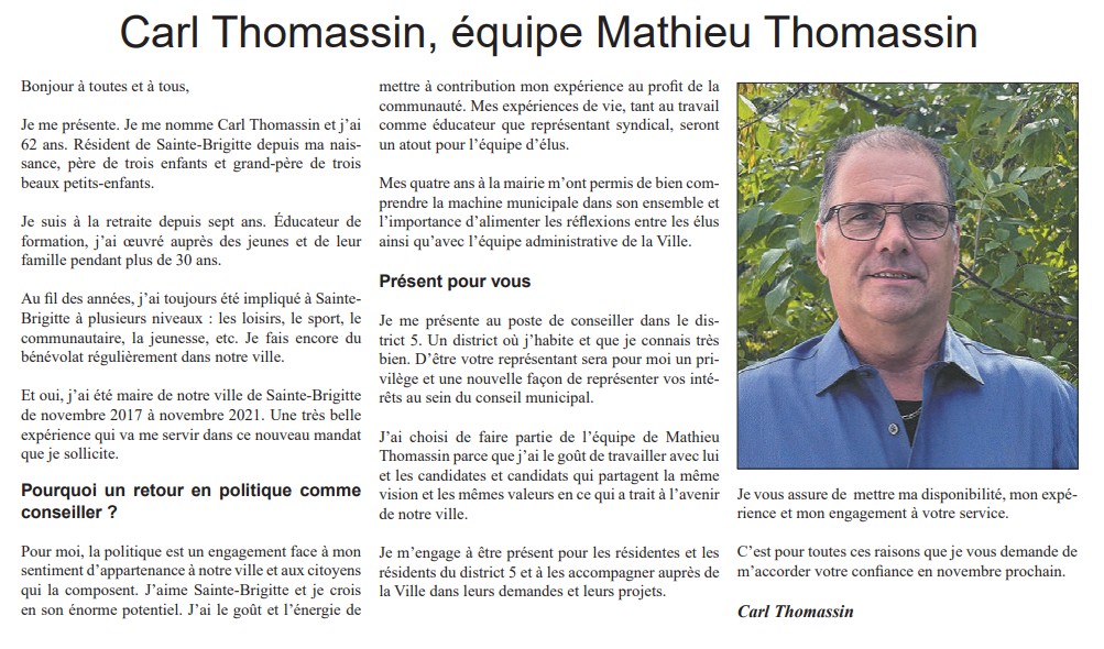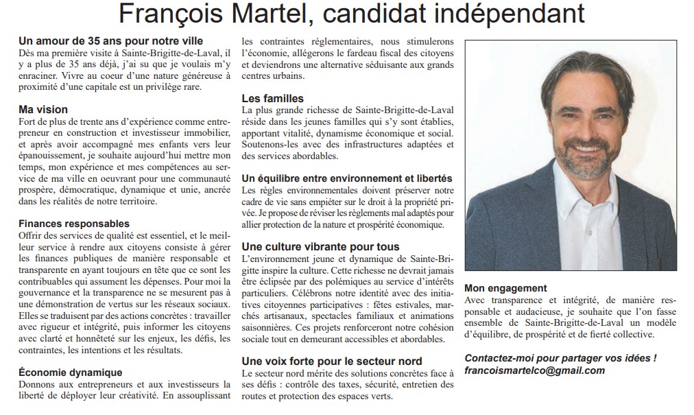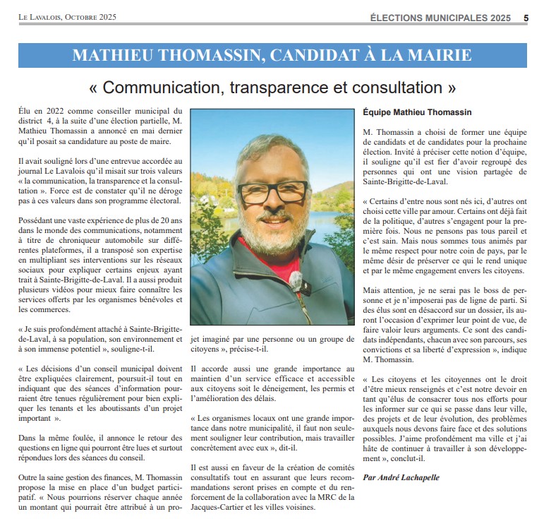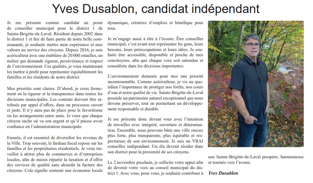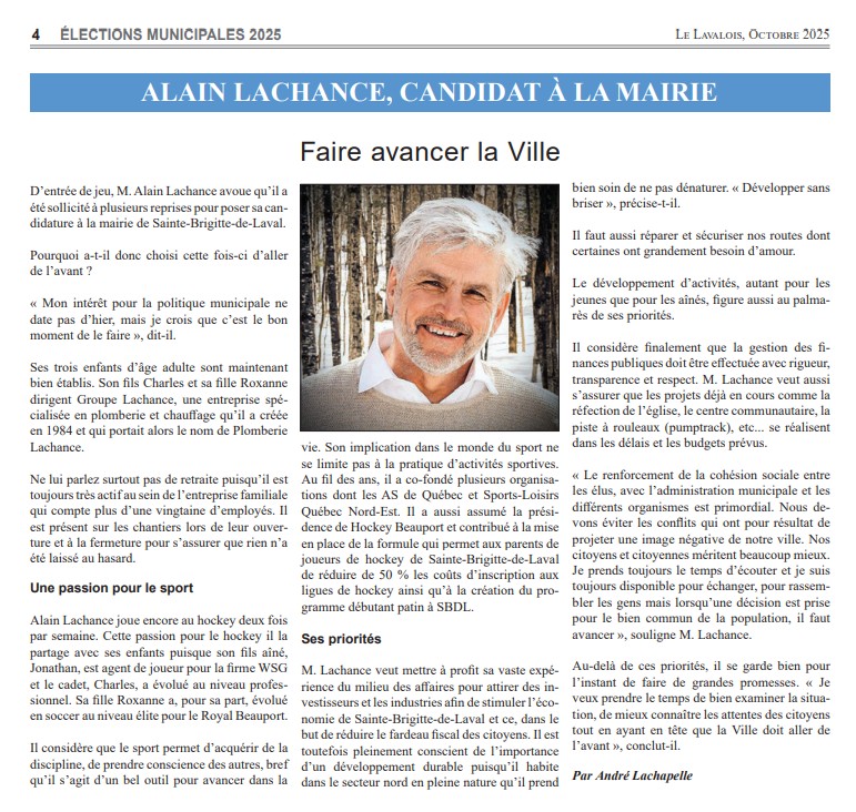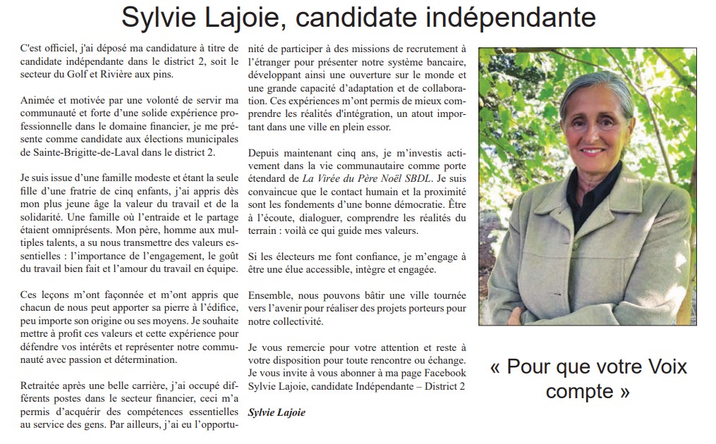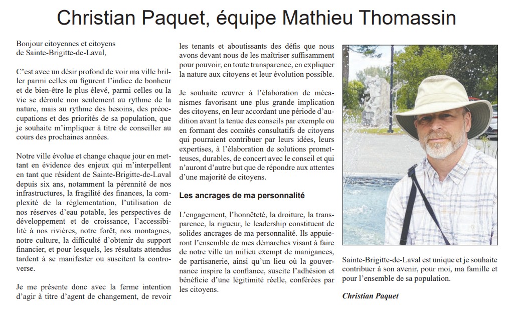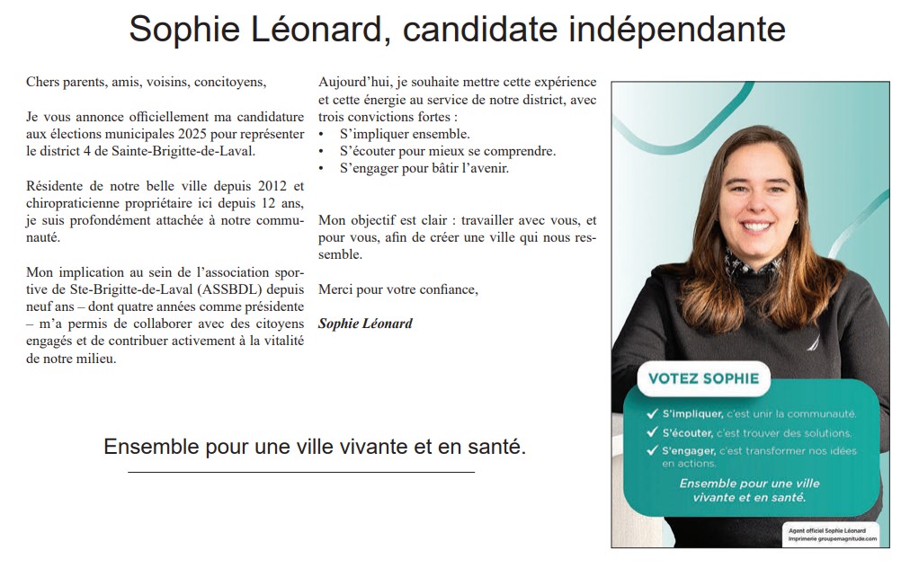 - Page officielle des élections municipales à Sainte-Brigitte-de-Laval sur le site Web de la Ville