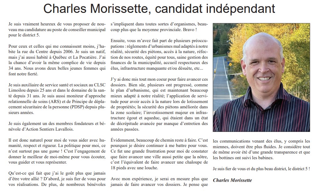 - Présentation des candidates et candidats à la mairie et aux six districts :