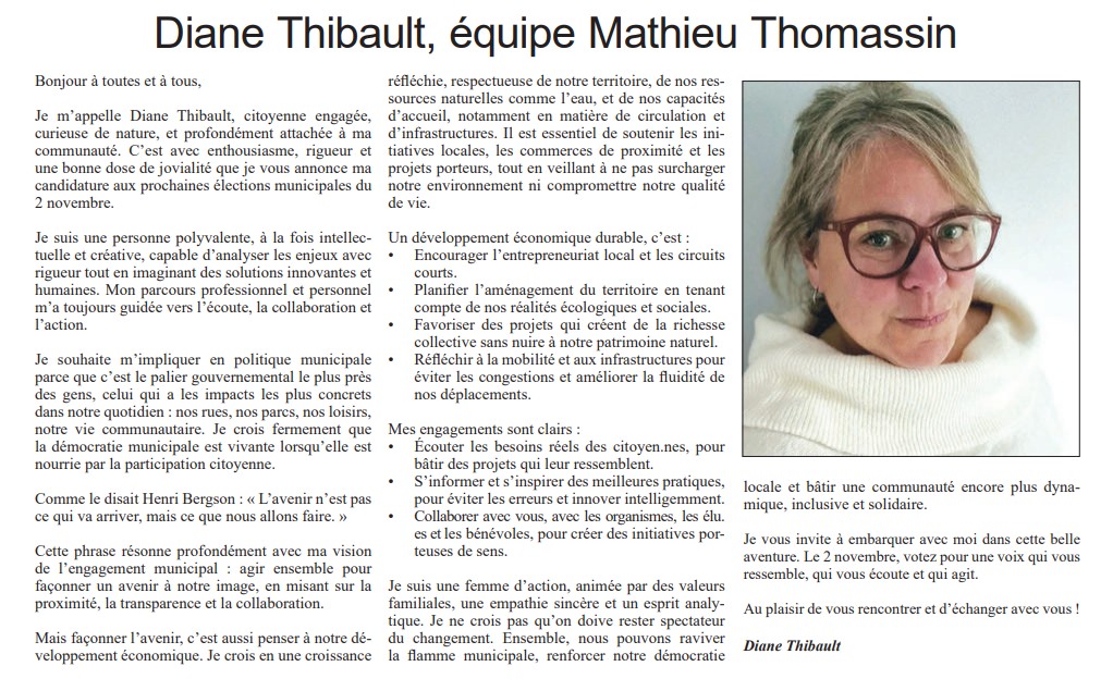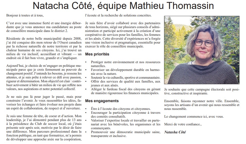 À la suite du recensement des votes tenu ce soir au gymnase de l’école primaire du Trivent 2, la présidente d’élection de la Ville annonce les résultats officiels des élections municipales générales.