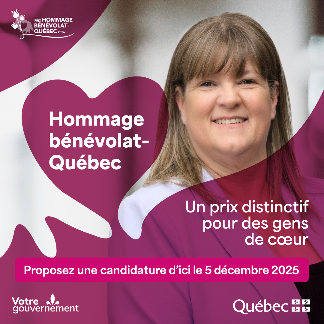 Ces prix, remis chaque année par le gouvernement du Québec dans le cadre de la Semaine de l’action bénévole, soulignent l’engagement et la contribution de bénévoles et d’organismes dans trois catégories :