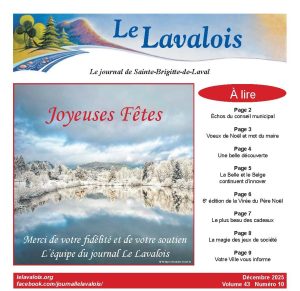 Comme à chaque parution, retrouvez les actualités municipales dans votre Journal Le Lavalois, un média local qui informe et rassemble les citoyens de Sainte-Brigitte-de-Laval. Afin de renforcer nos communications et de rejoindre un maximum de gens, la Ville y présente une page dédiée aux informations municipales.